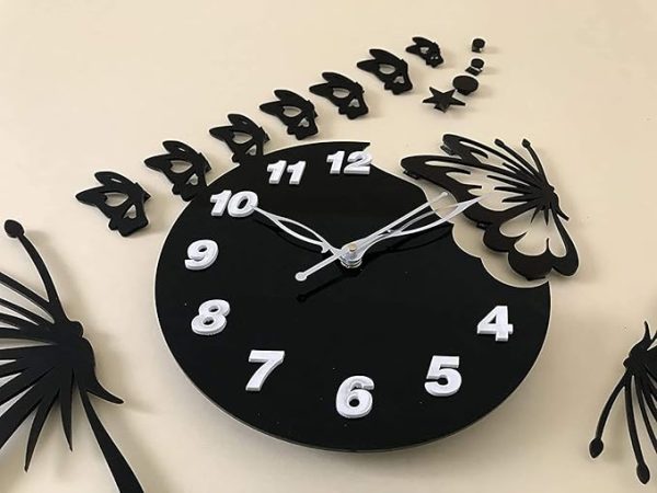 Flying Butterflies Wall Clock with Stars, 3D Self Adhesive Wall Clock, Butterfly Wooden Wall Clock for home for living room for room for bed room for drawing room